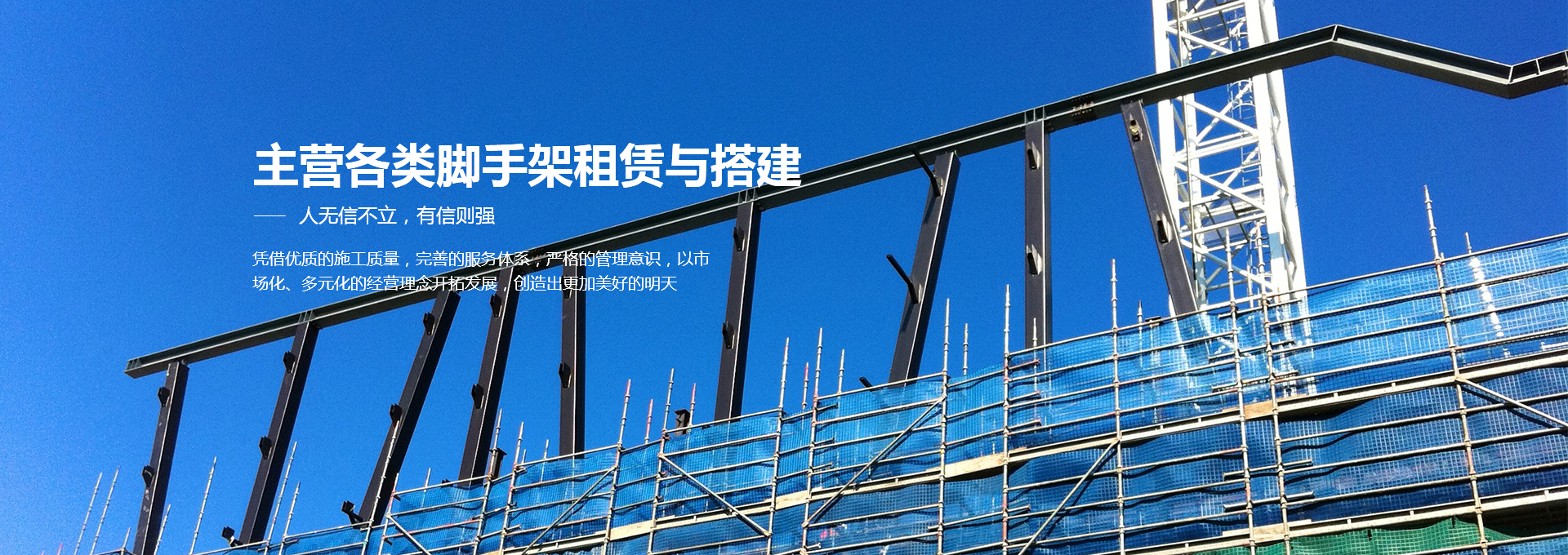 <p>致力于脚手架及建筑扣件的租赁搭建、租赁销售:实力雄厚，多年的建筑行业从业经验，以全新的产品服务市场，备受好评！</p>