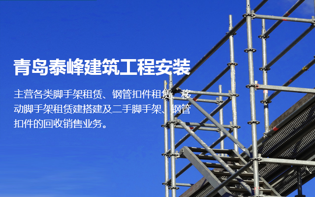 <p>青岛泰峰建筑工程安装有限公司主营各类脚手架租赁、钢管扣件租赁、移动脚手架租赁建搭建及二手脚手架、钢管扣件的回收销售业务。公司实力雄厚，拥有钢管约3000吨、扣件70万只、钢笆7万多片塔吊、人货电梯多台；总资产达到1000多万元。是一家具有脚手架搭建、水电安装专业承包施工资质的企业，并成为青岛市五金协会的会员单位。且多次参与高层建筑、建筑装修、玻璃幕墙、桥梁、隧道、地铁、电厂维修施工、造船等行业的施工，并获得施工单位的一致好评。 人无信不立，有信则强公司以“薄利多销、服务取胜”为经营宗旨...</p>